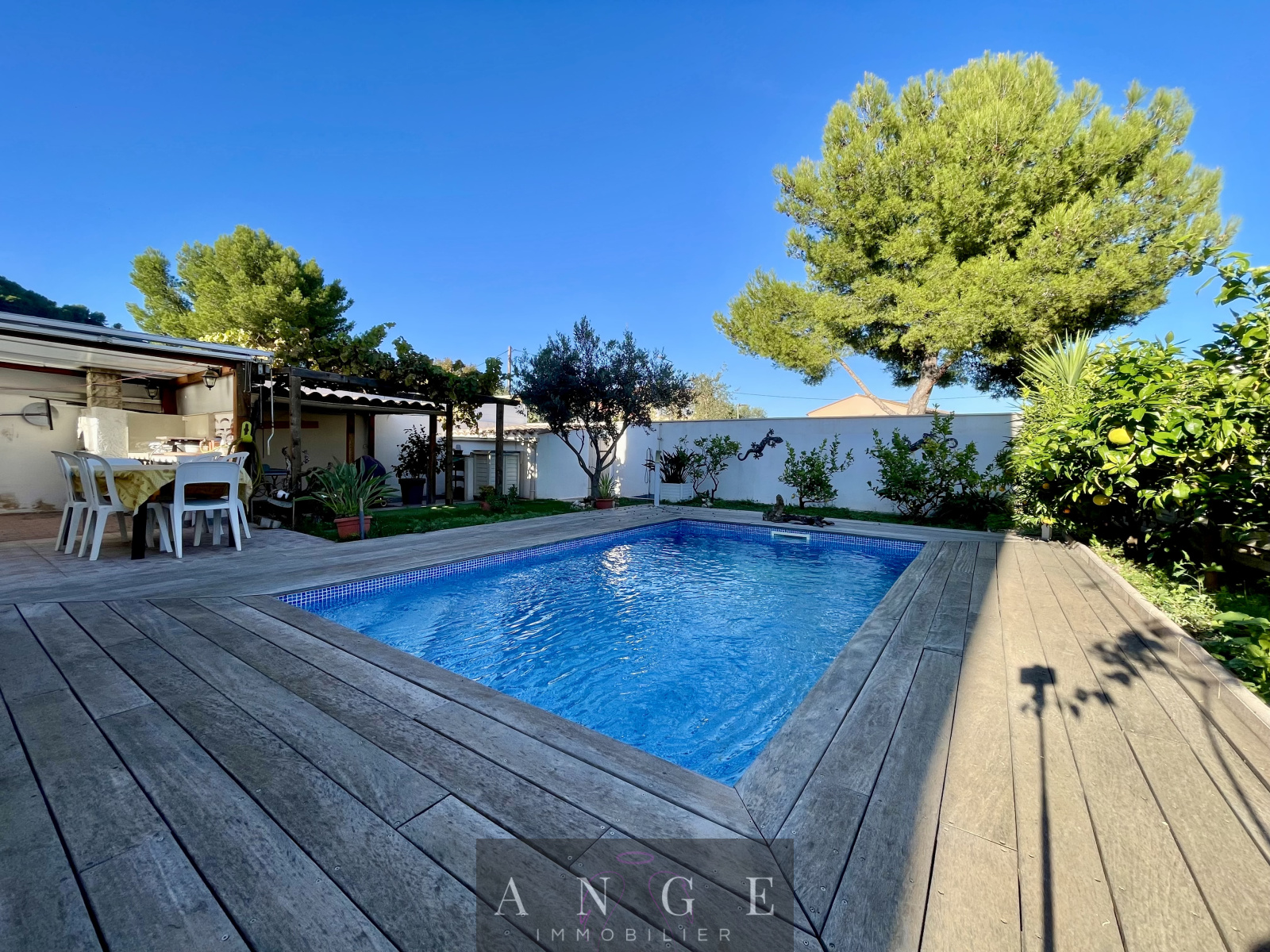 De belles terrasses, une piscine de 5x3m, un jardin paysagé et de quoi se stationner.