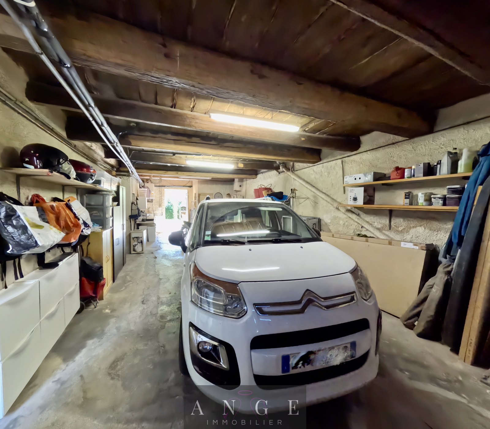 Le bien dispose d’un grand double garage de 57 m² pouvant accueillir deux véhicules, avec espace atelier et buanderie.