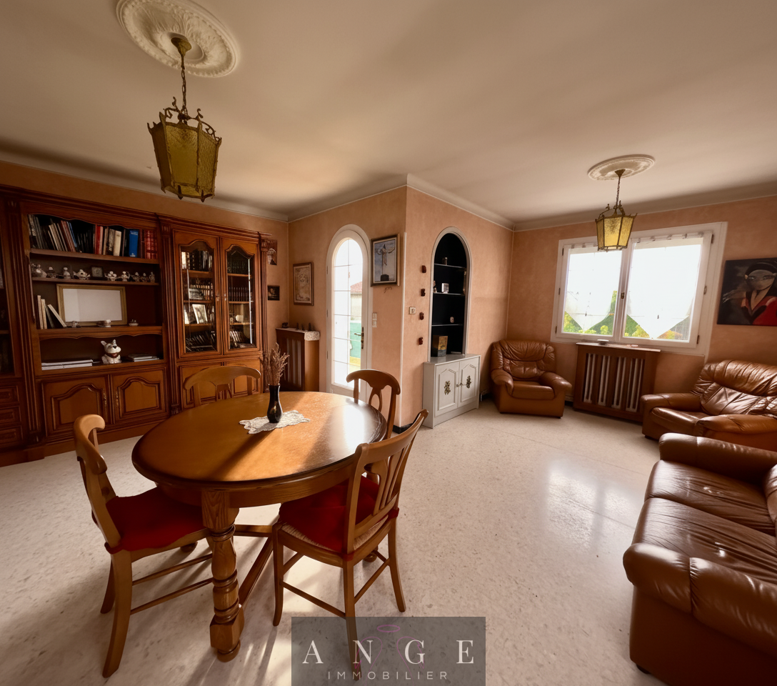 À l’étage, l’habitation principale offre un appartement T4 de 85 m², lumineux et fonctionnel, comprenant : un hall d’entrée, un séjour salon climatisé, une cuisine séparée, trois chambres, une salle d’eau, ainsi qu’une spacieuse terrasse.