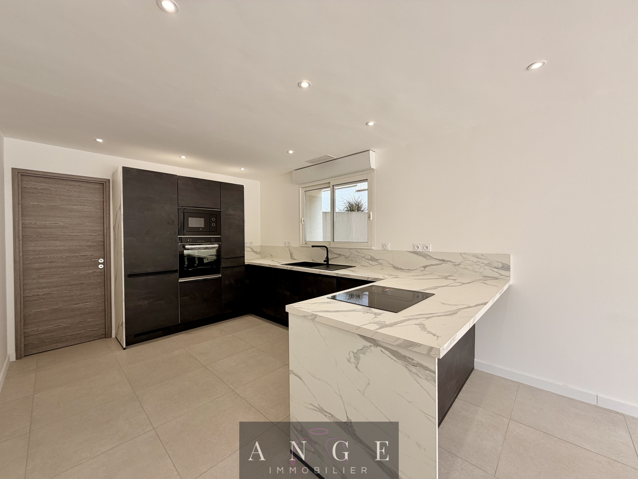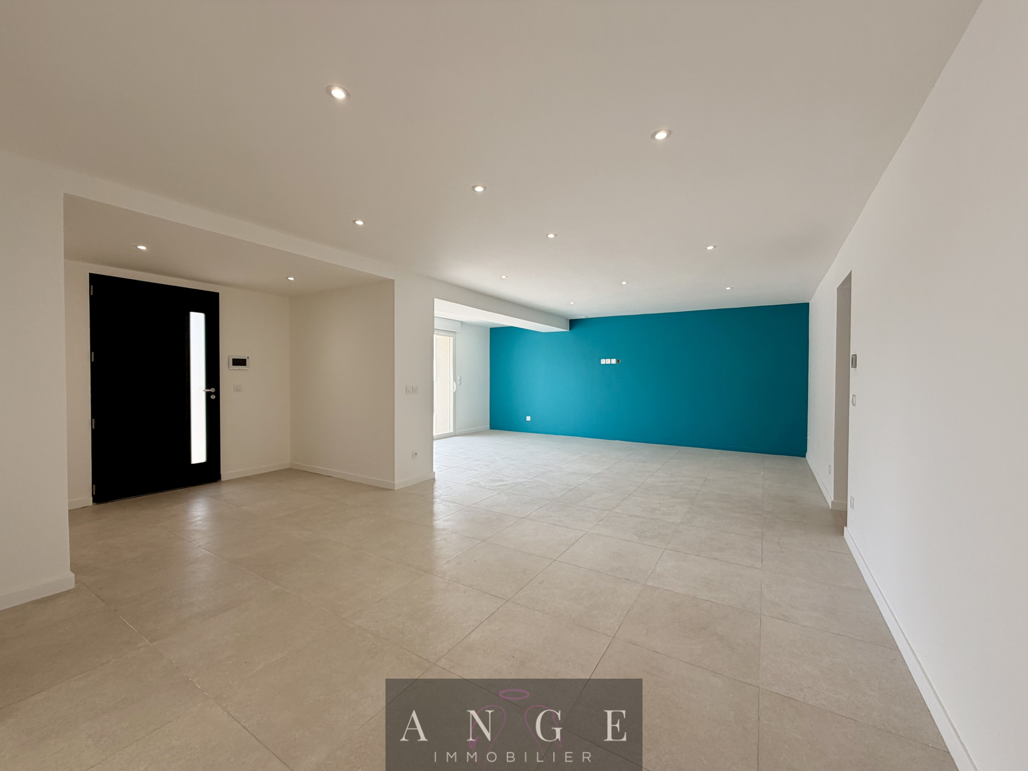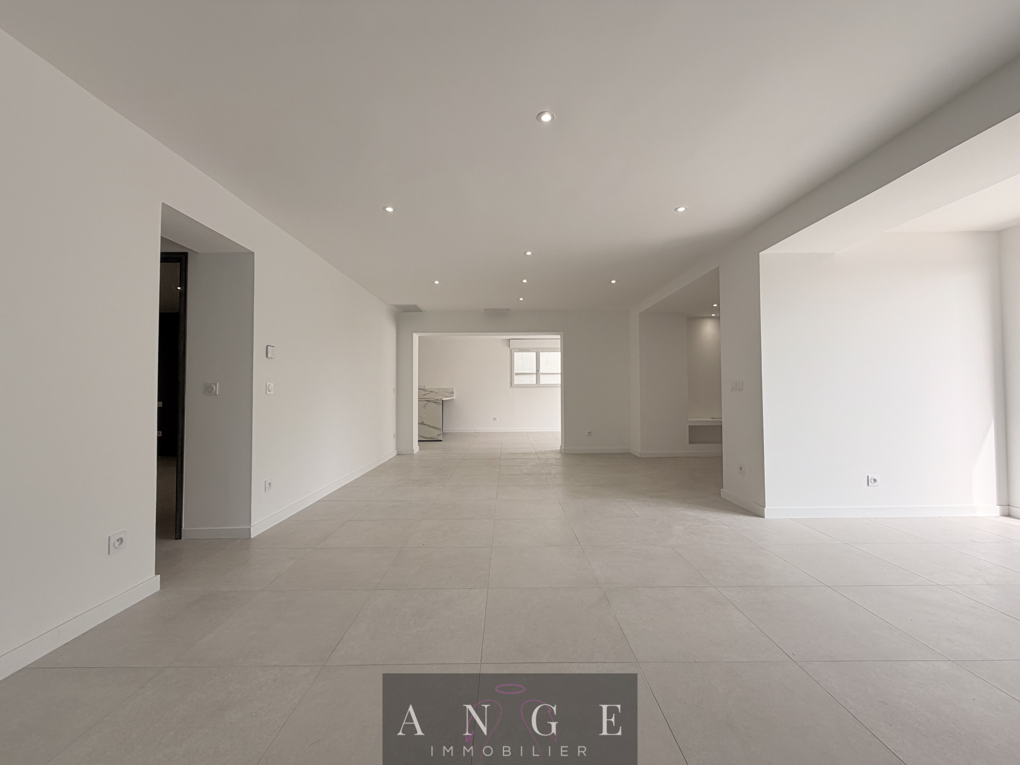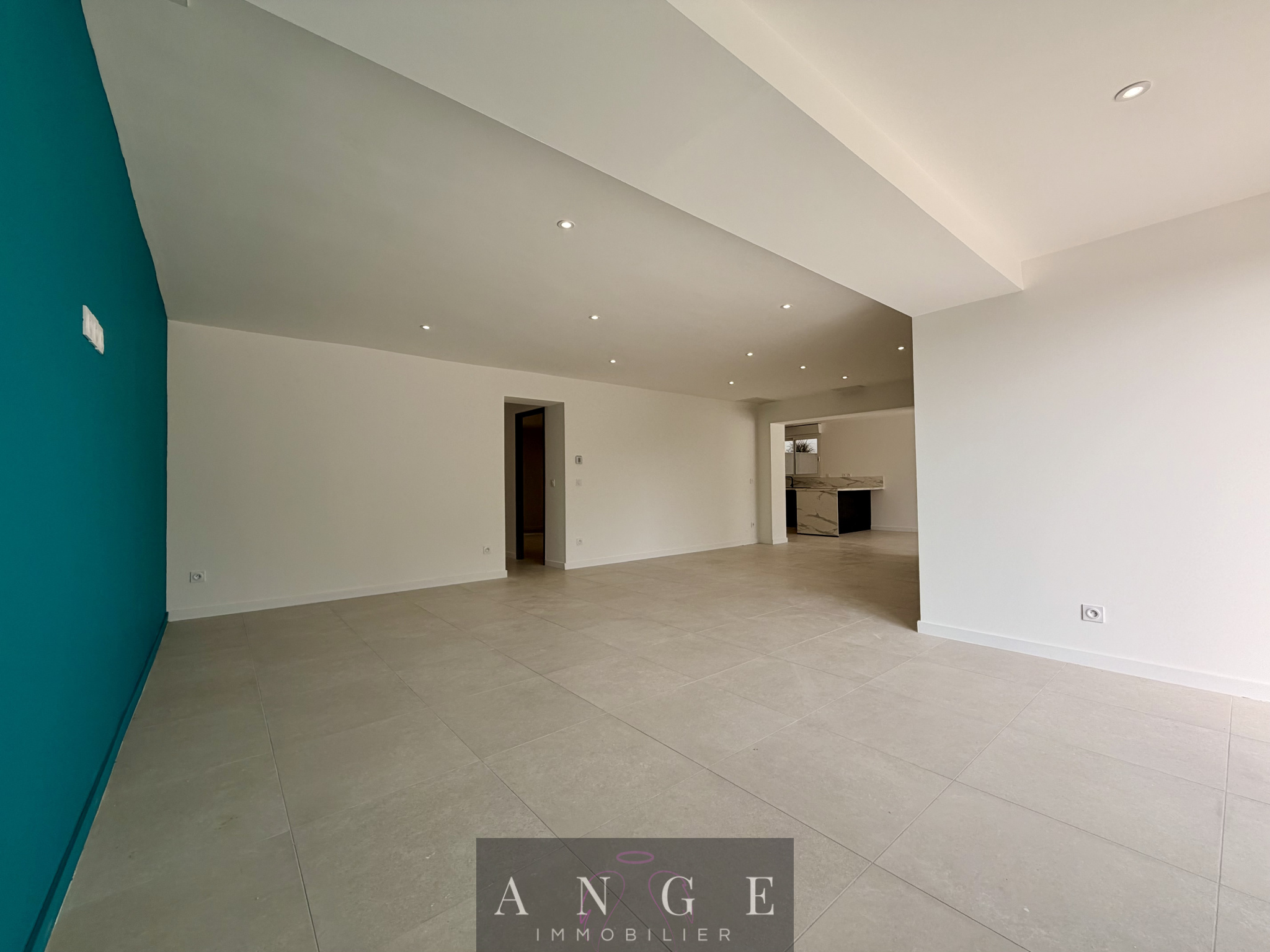 Dès l’entrée, le ton est donné : un vaste salon-séjour de 46m² baigné de lumière grâce à ses larges baies vitrées, prolongé par un espace cuisine contemporaine équipée et sa salle à manger pour un ensemble de 37m², avec accès direct à la terrasse en travertin et à la piscine.